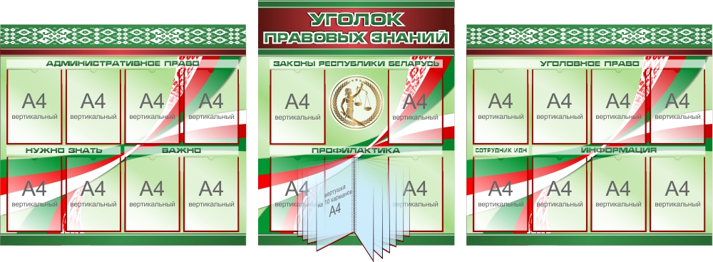 Состоиз из трёх стендов: Административное право, Уголок правовых знаний, Уголовное право.