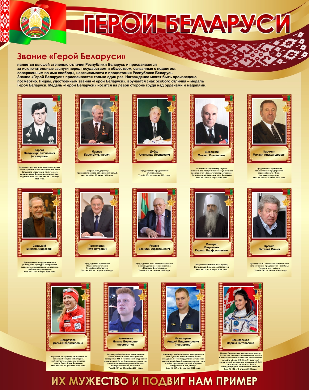 Модель 25260 Стенд Герои Беларуси в золотисто-бордовых тонах 950*1200 мм