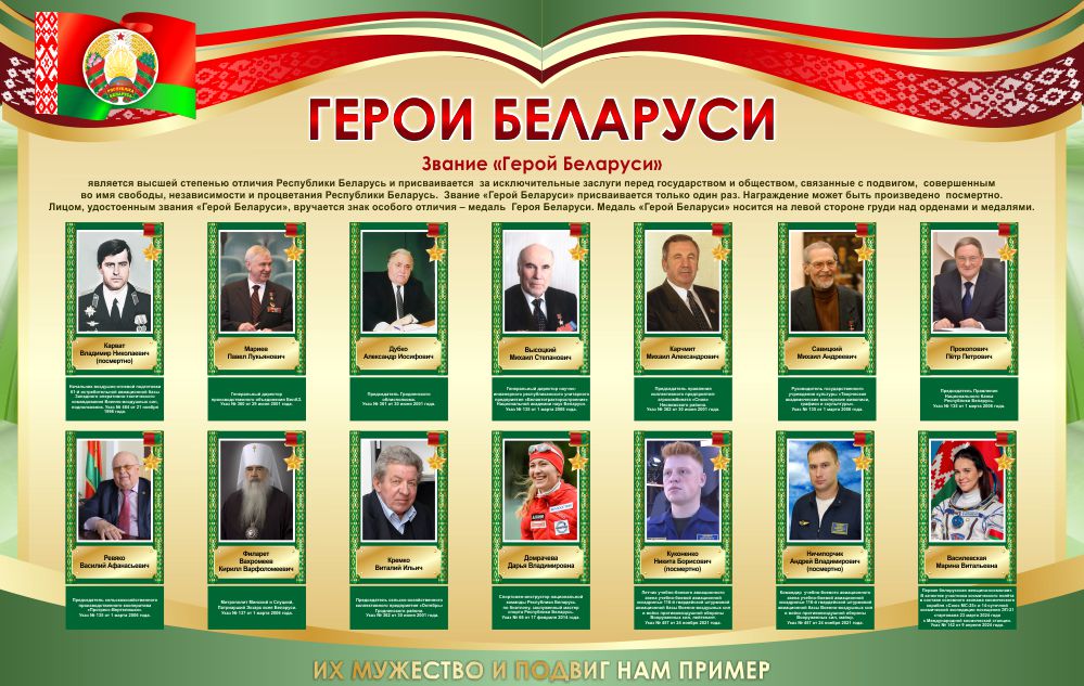 Модель 25139 Стенд Герои Беларуси в золотисто-зеленых тонах 1500*950 мм