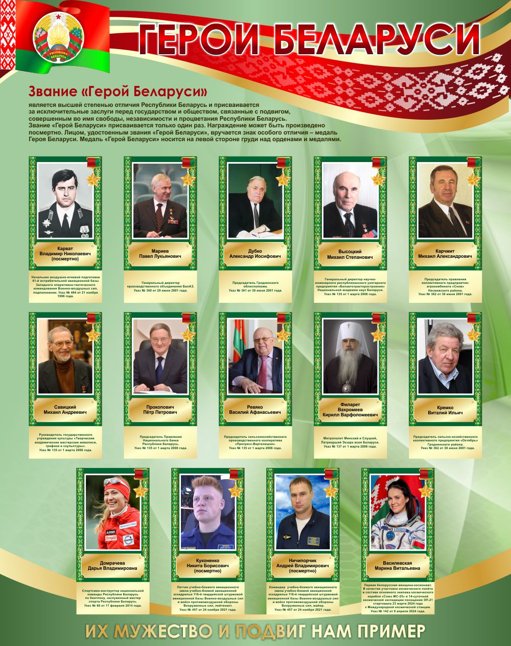 Модель 25132 Стенд Герои Беларуси в золотисто-зеленых тонах 950*1200 мм