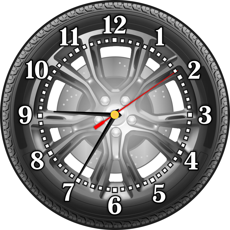 Гарантия качества Часы настенные кварцевые с автомобильным колесом. Часы изготовлены из пластика 3 мм и со встроенным часовым механизмом.