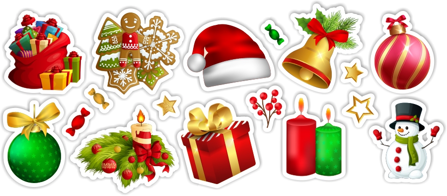 Гарантия качества Комплект Новогодних наклеек в количестве 17 штук.Фигурные наклейки помогут украсить Вашу группу или класс к празднику. Новогодние наклейки хорошо сочетаются с традиционными снежиками, создадут Вам праздничное настроение Предназначены для размещения на стенды, украшения шкафчиков, стульчиков, дверей, полочек, окон и .т. д.