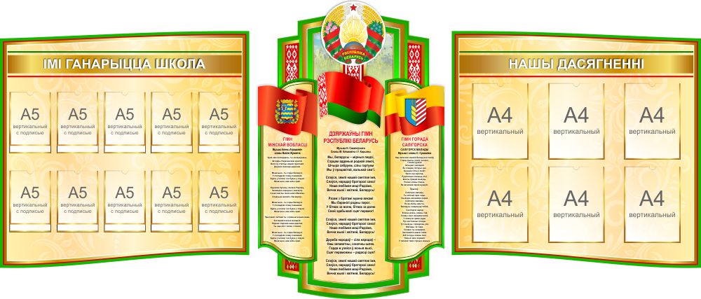 Модель 25690 Стендовая композиция Государственная символика Беларуси, Области и города Солигорска на белорусском языке 2200*1000мм