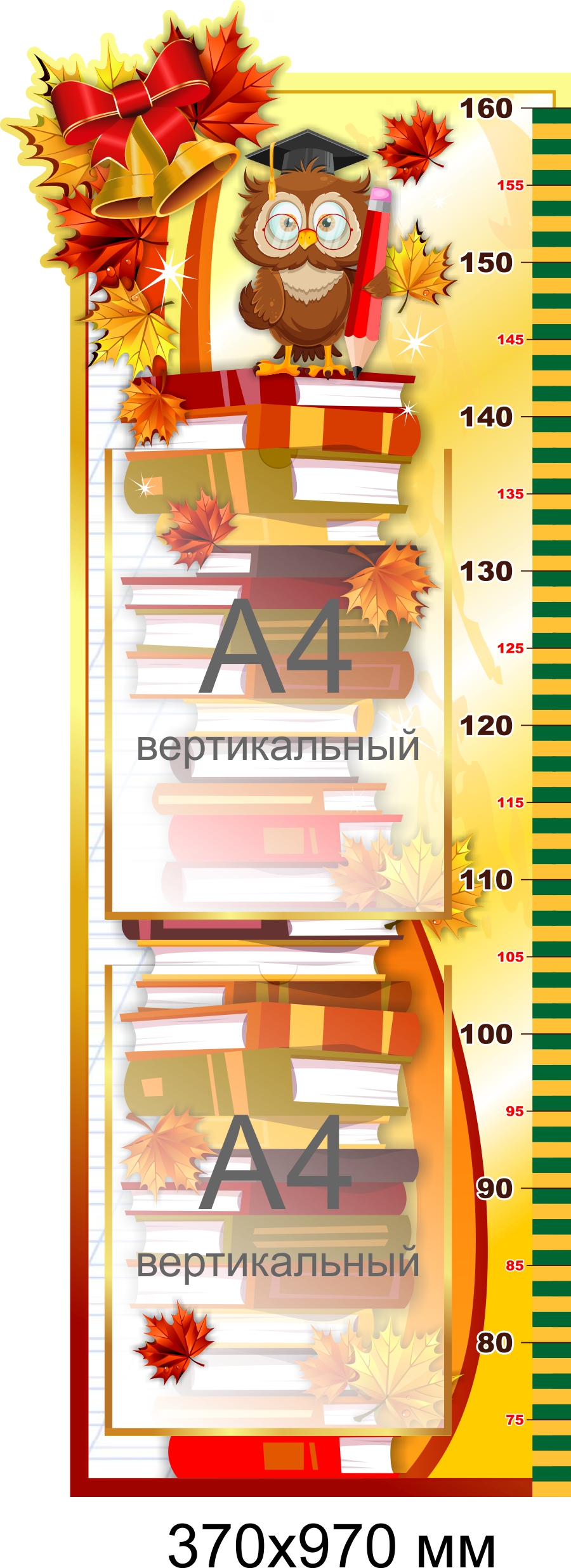 Модель 25573 Стенд-Ростомер для начальной школы с карманами А4 370*970мм