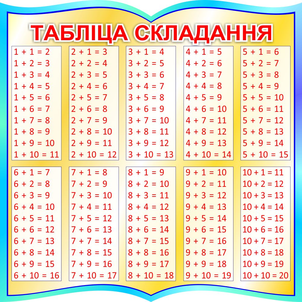 Гарантия качества Стенд Табліца складання для начальной школы в золотистых тонах. Дизайн стенда выполнен на школьную тематику. Входит в группу стендов для оформления кабинета в одном стиле