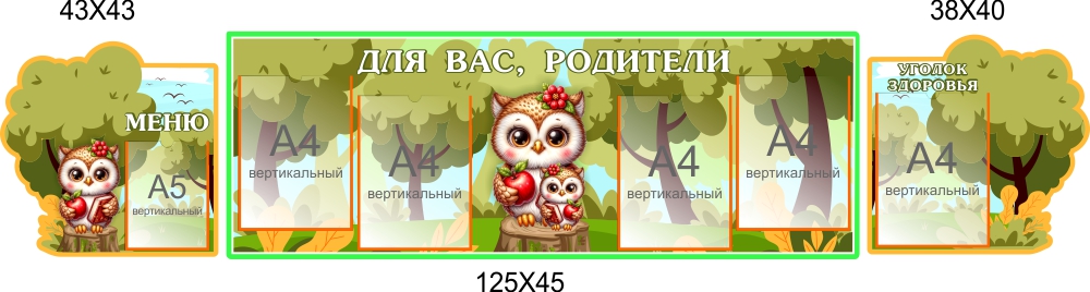 Модель 43396 Стендовая композиция Для Вас, родители в для детского сада с совушками 2150*450мм