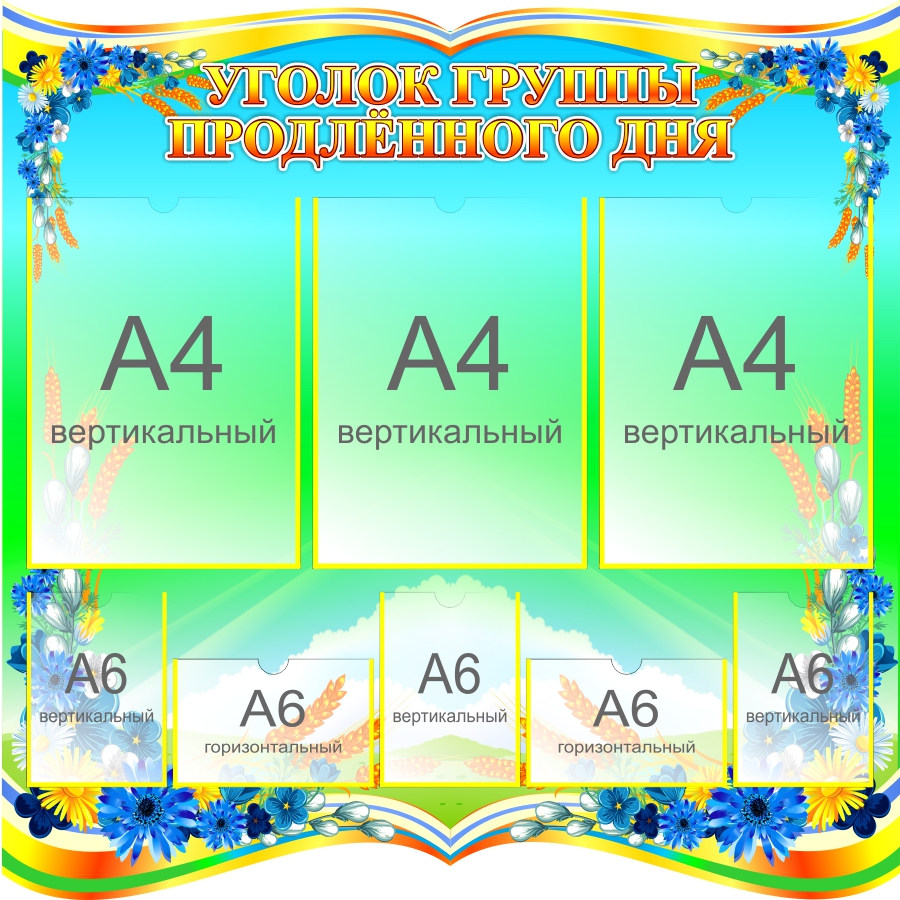 Гарантия качества Фигурный стенд "Уголок группы продленного дня". На стенде расположены карманы для размещения информации: список учеников, информация для родителей, кружки, объявления и.т.д. Родителям всегда будет известно чем их дети занимаются в группе продлённого дня.