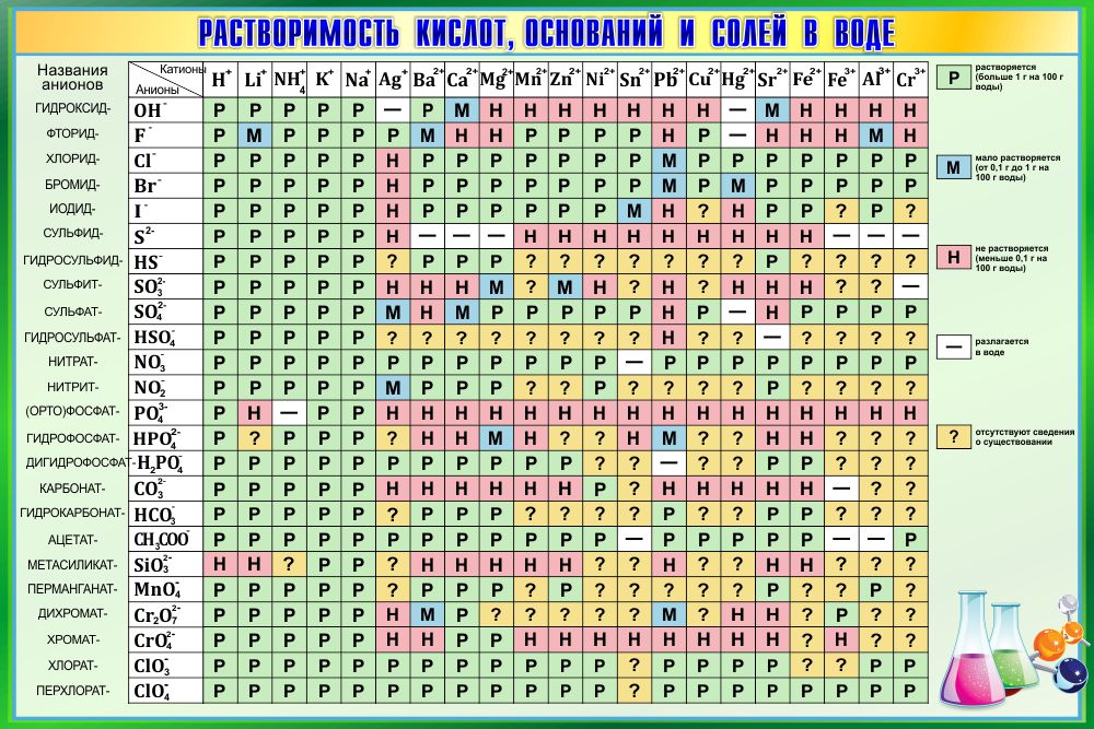 Модель 25600 Стенд Таблица растворимости кислот, оснований и солей в воде 1500*1000 мм