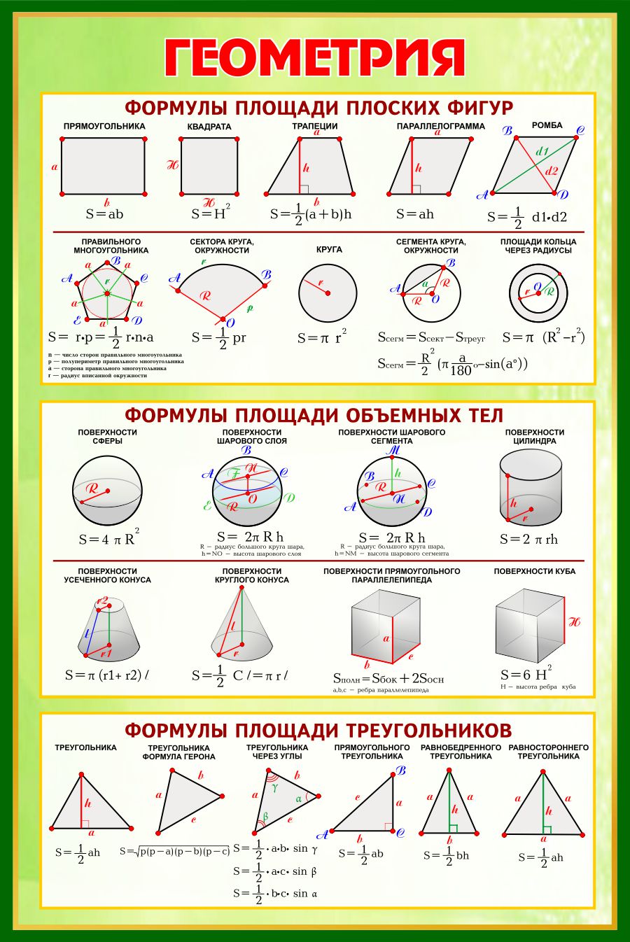 Стенд Геометрия в золотисто-зеленых тонах.Для кабинета математики. Дизайн стенда выполнен на школьную тематику. Размер стенда 430*650 мм