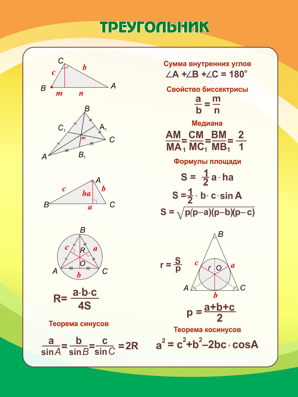 Модель 25230 Стенд Треугольник в кабинет математики в оранжево-зеленых тонах 750*1000мм