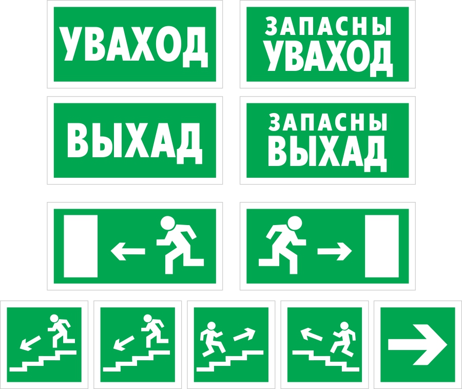Гарантия качества Комплект табличек с эвакуационными знаками на белорусском языке.