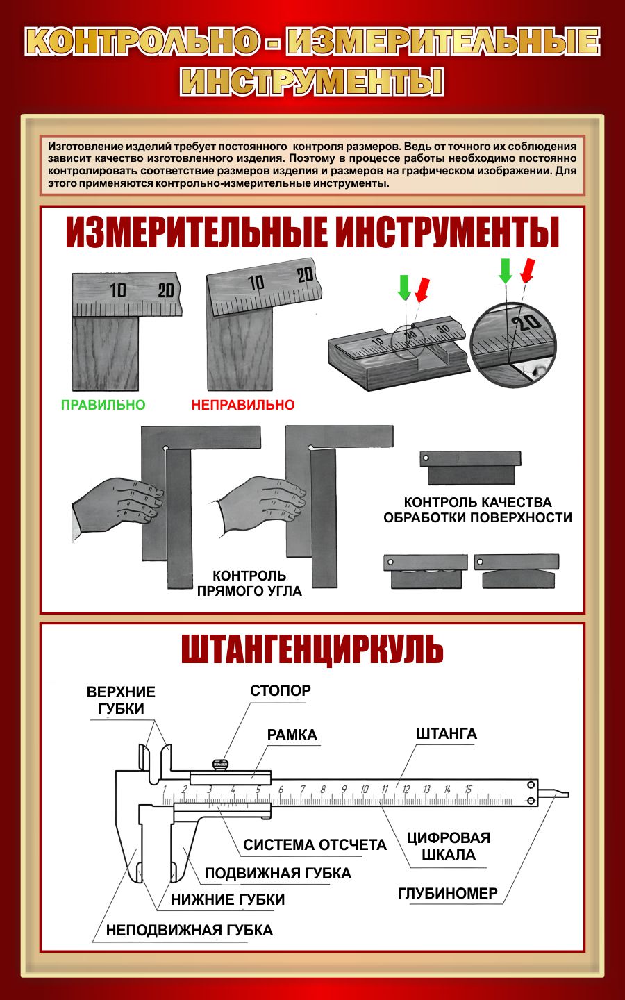 Стенд Контрольно-измерительные инструменты в бордовых тонах.