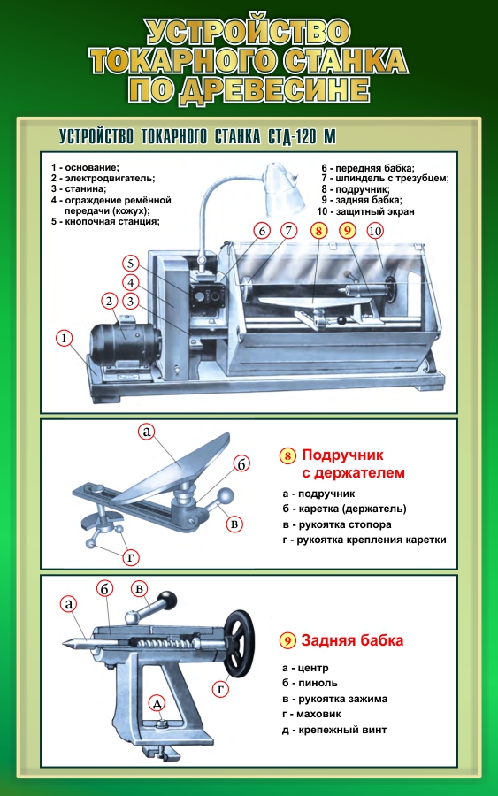 Модель 25017 Стенд Устройство токарного станка по древесине в зеленых тонах 500*800 мм