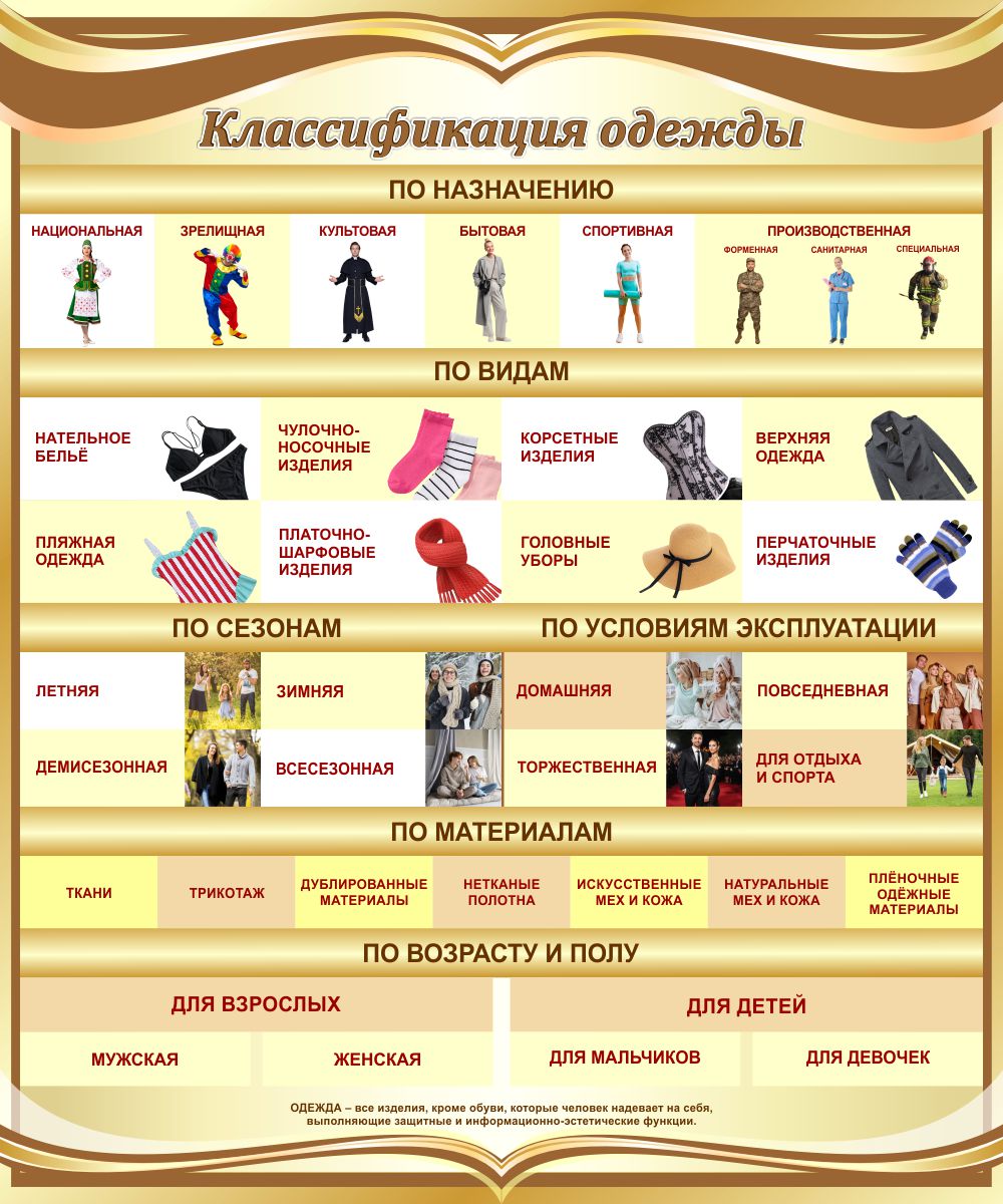 Гарантия качества Стенд Классификация одежды в золотистых тонах
