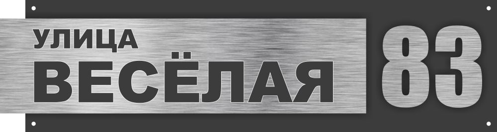 Модель 11606 Табличка Номер дома и название улицы в черно-серебристых тонах 600*160 мм